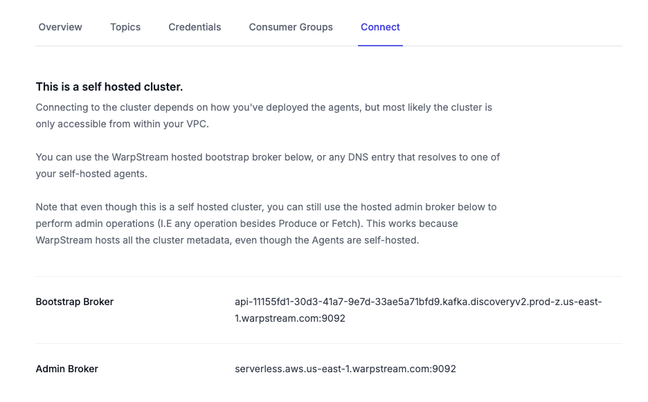 WarpStream Agents, on the other hand, are completely stateless, and any WarpStream Agent can service any produce or fetch request. Therefore the focus of the WarpStream service discovery system is different from that of Kafka's. WarpStream's service discovery system has exactly two goals: